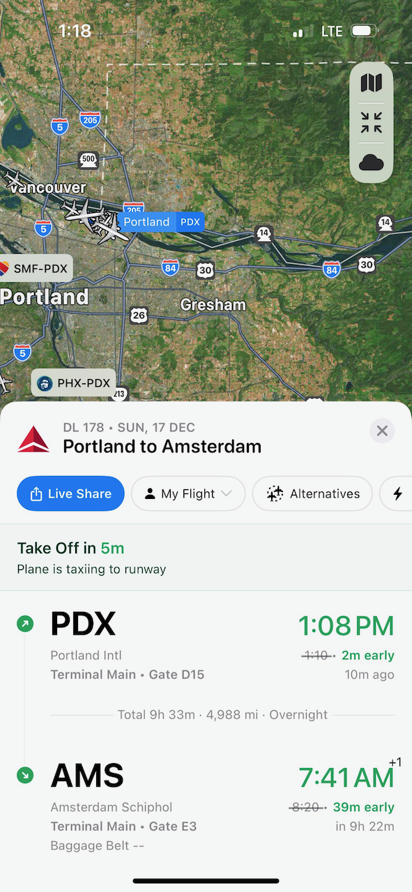 We are off on a big adventure! The first leg of our journey took us to Amsterdam for a day. The flight left at 1:10pm our time, lasted 10 hours, and arrived 8:00am Amsterdam time.