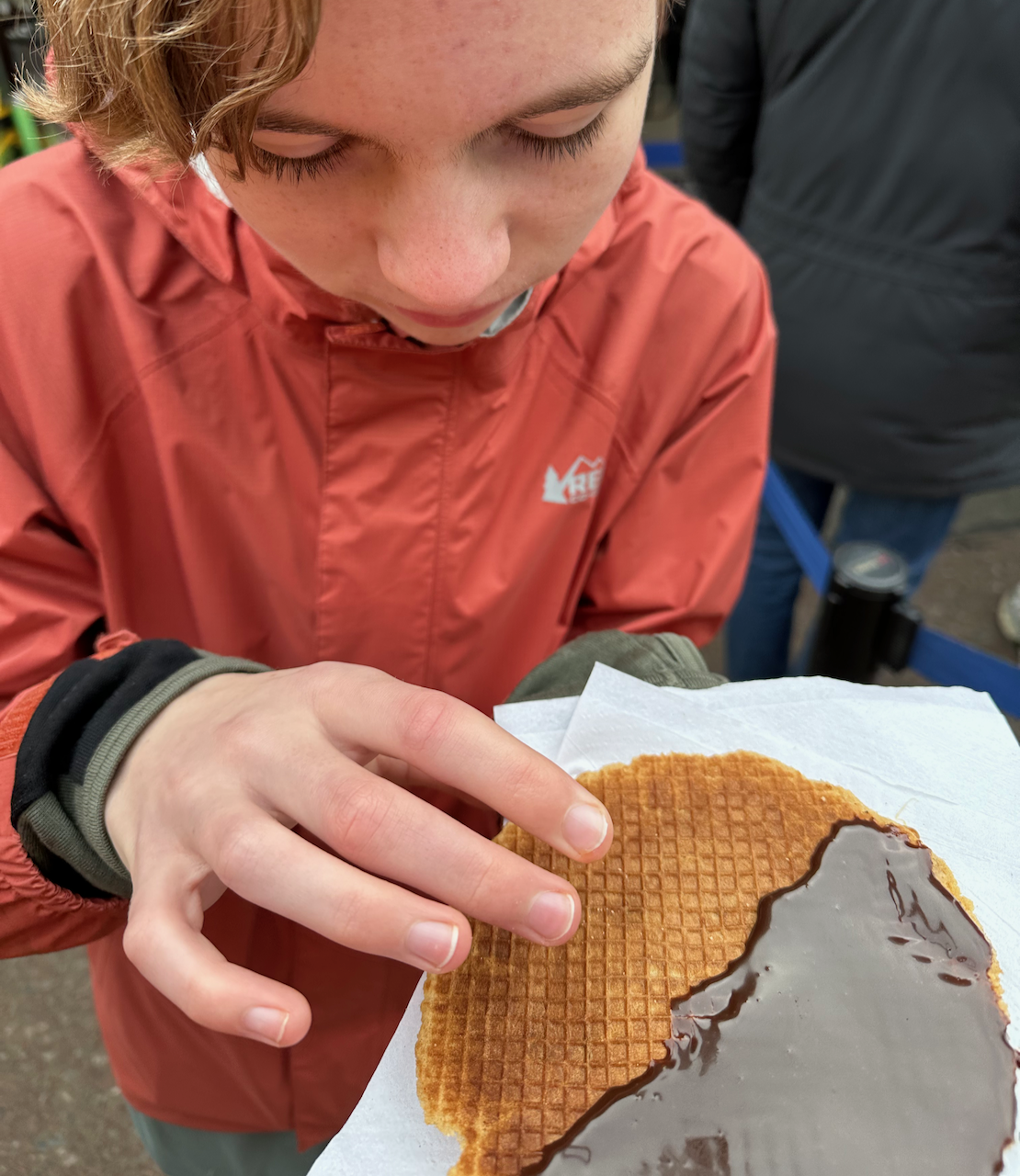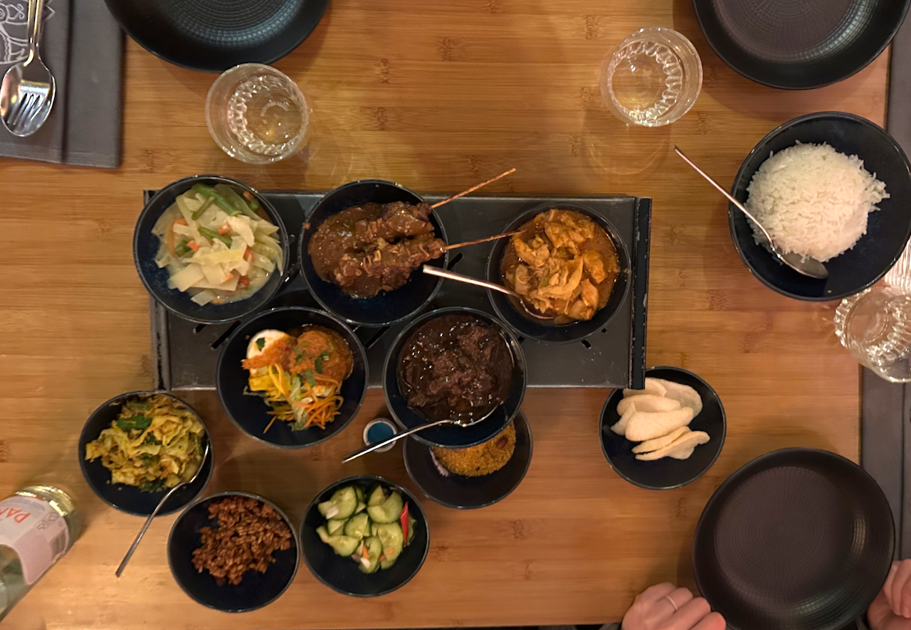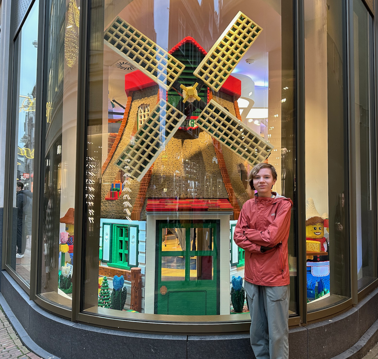 The train was enviable. Nice seats, smooth track, and fast. Our overall plan for Amsterdam was to walk a lot and stay awake. Success! Our stops included Tony’s Chocolonely Superstore, crossing some canal bridges, fries with truffle mayo, freshly made Stroopwafels, Rijksmuseum, a meal of Rijsttafel, the Lego Store, and finding a belt (so far the only thing that wasn’t packed). I started feeling a bit loopy some time before the museum. Time changes are hard.