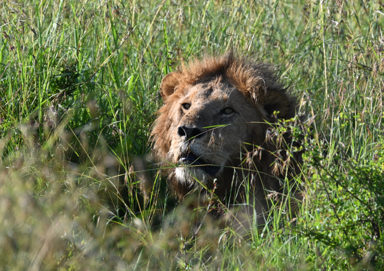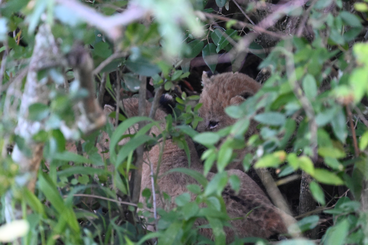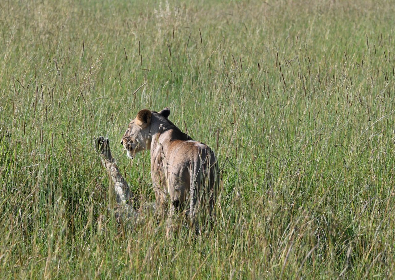 After lunch and short naps we had our afternoon safari. Our guide was excellent, relaying information about the animals and area while also scouting areas to visit. The relatively small size of the conservancy made for a much more relaxing pace. Our top request for animals to see was “babies” and they were in abundance: two young elephants, a wee hippo (still terrifying), three itty lion cubs (too hidden to get great photos), and more zebra than I can count. Somehow we also came across a lion pair who, after walking by the vehicles, decided to mate.