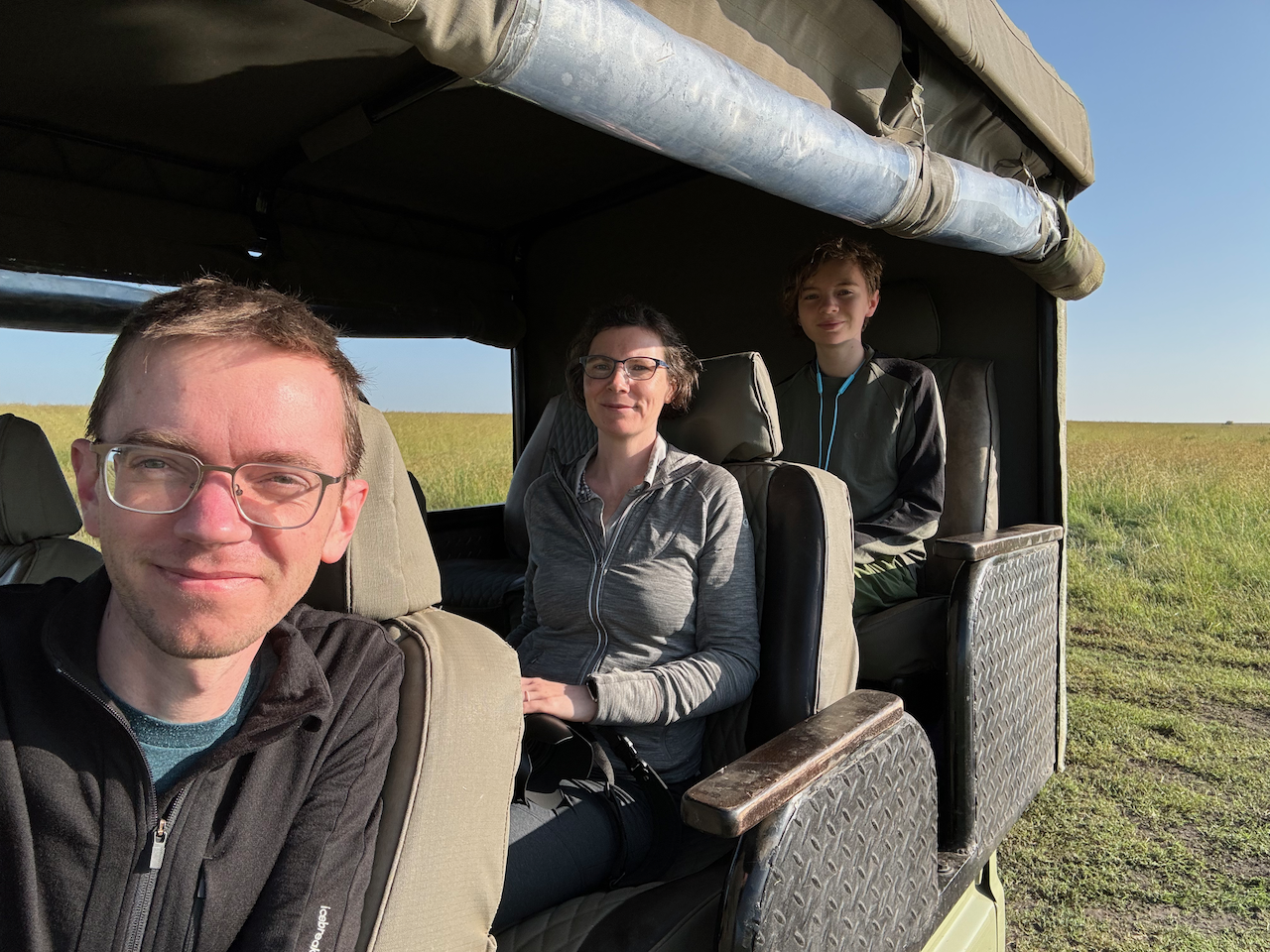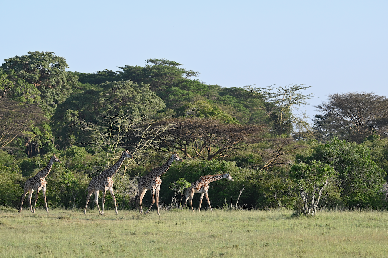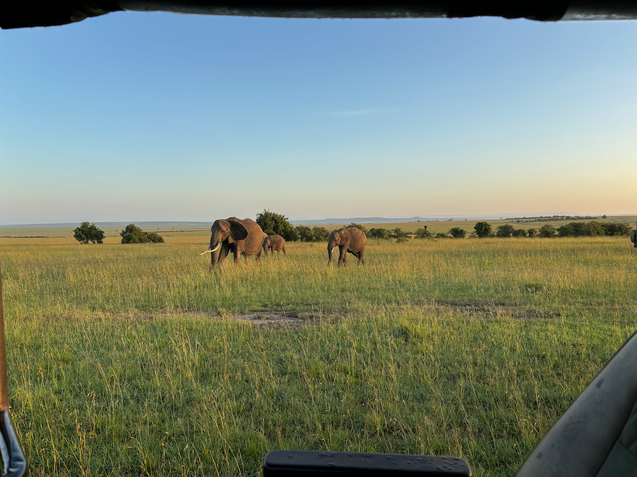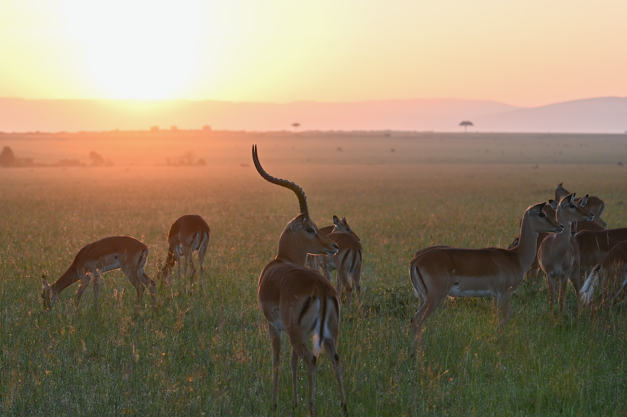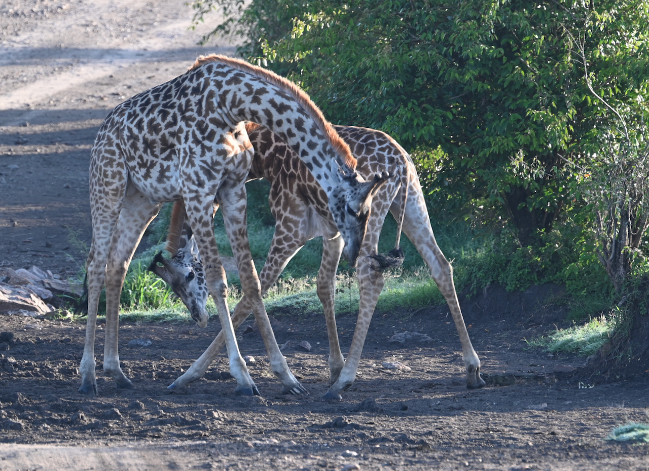 Our final Maasai Mara National Reserve safari started at 6am. The sunrise was brief yet spectacular. Our guides hoped to find a leopard before we left, but the search turned up a family of giraffes instead. Two of them were play fighting and I was more than happy to sit and watch their antics instead of driving around.